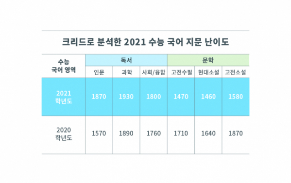 ▲크리드로 분석한 2021 수능 국어 지문 난이도