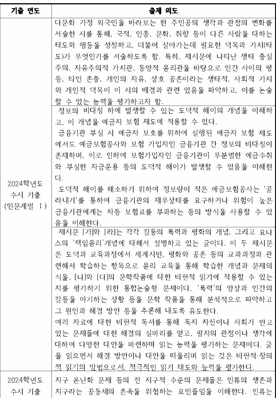 - 제시문 간의 비교와 종합적 사고를 요구.
