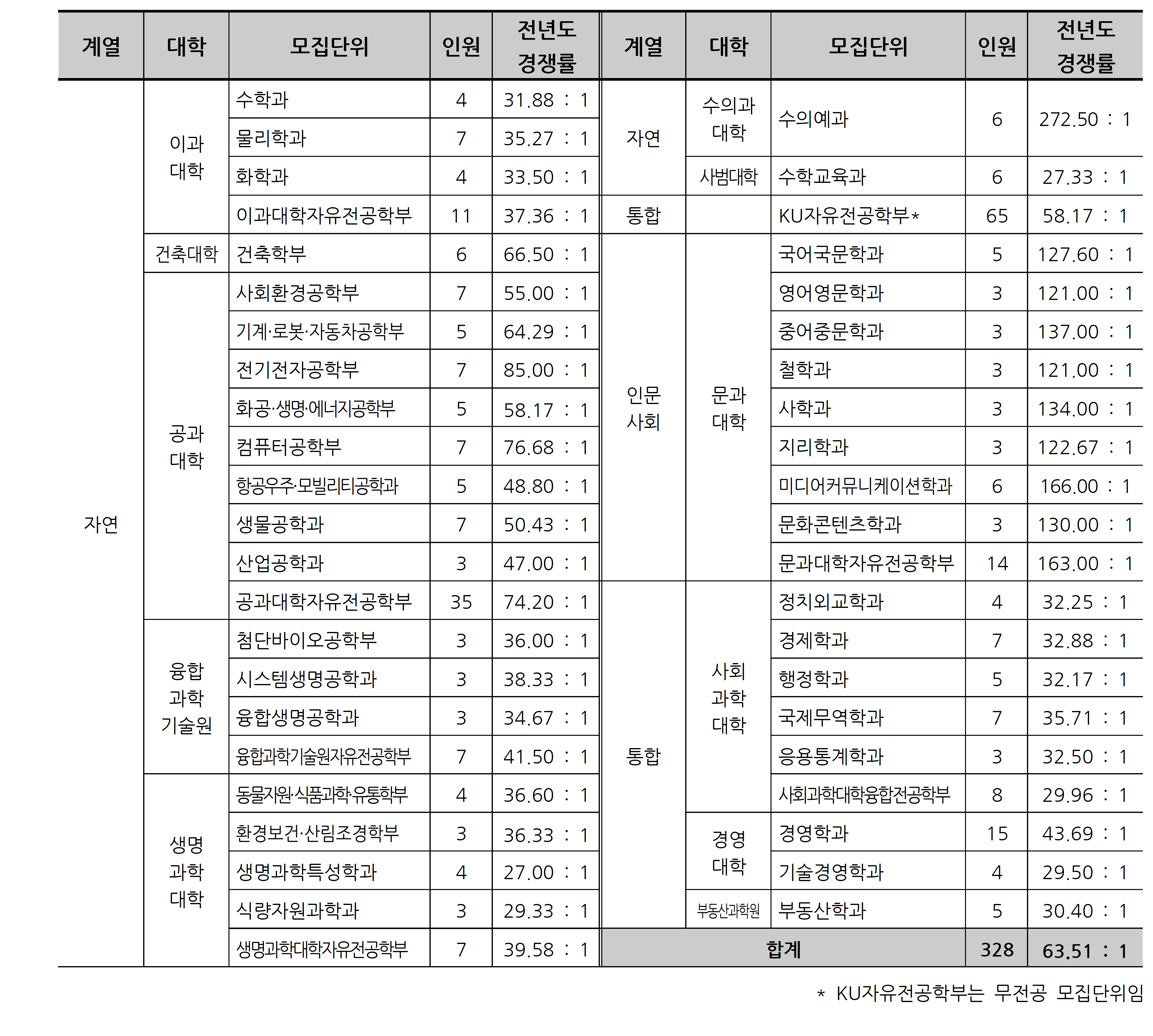 - 인문/자연계열:
