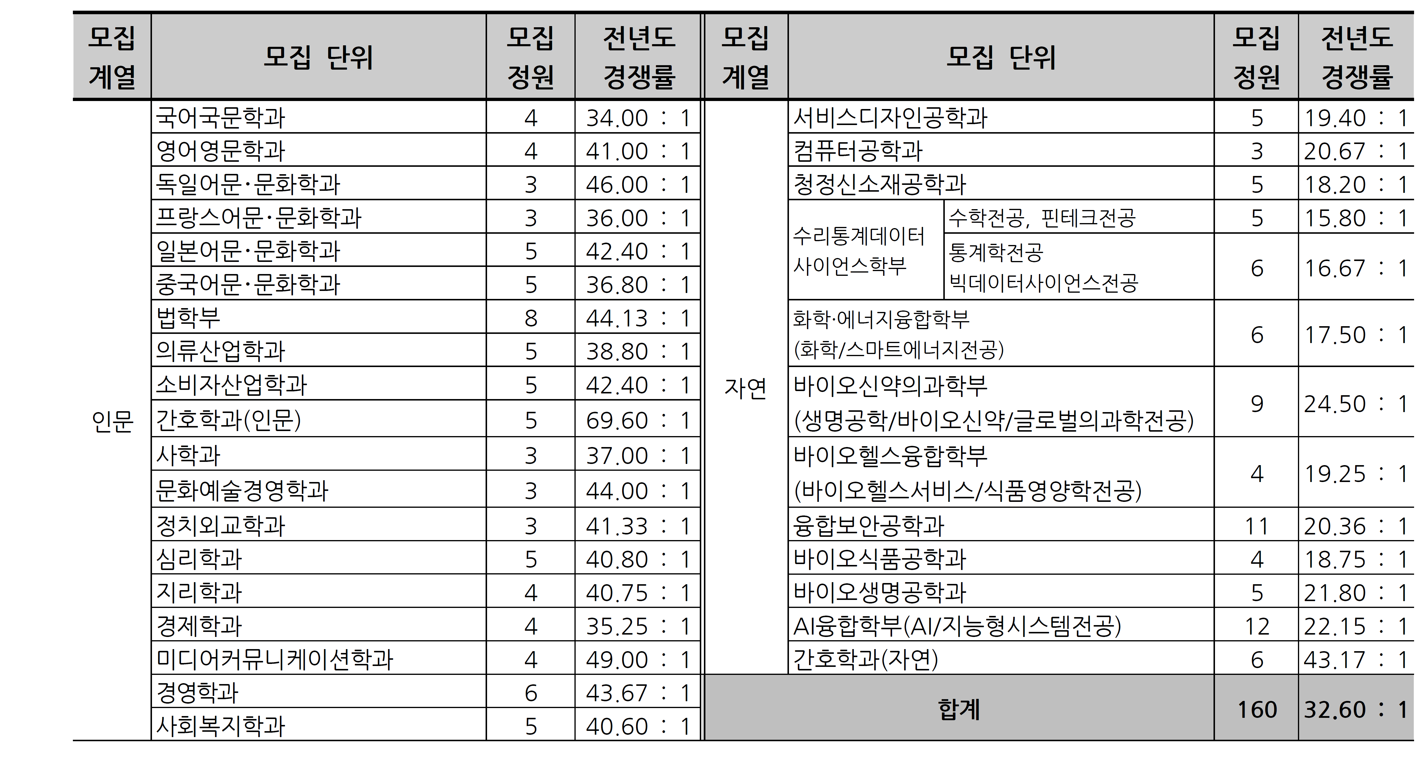 🧩 모집 단위 및 인원과 전년도(2025학년도) 경쟁률